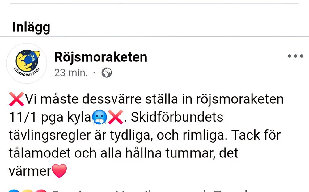 Röjsmoraketen inställd pga kyla